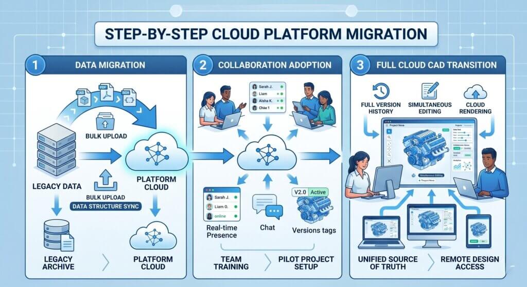 The journey between classical SOLIDWORKS and the 3DEXperience ecosystem does not need to be a tear-out and buy-in venture. Dassault Systèmes has developed a gradual adoption program that allows teams to move their own speed.